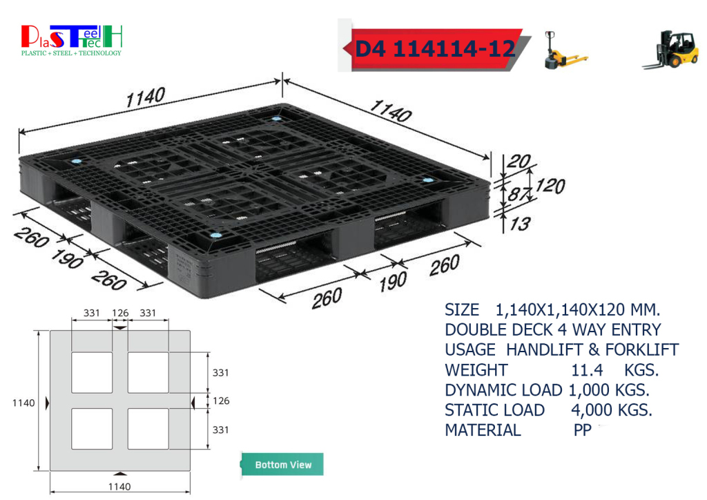 1,140×1,140×120 mm พาเลทพลาสติก วันเวย์
