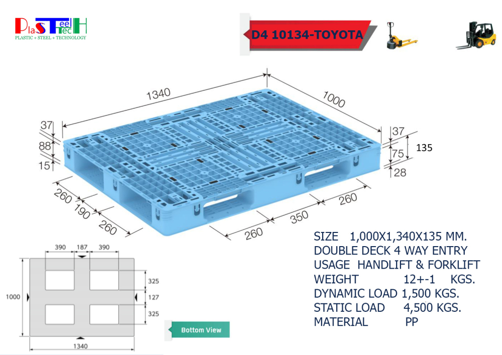 Toyota 1,000×1,340×135 mm พาเลทพลาสติก