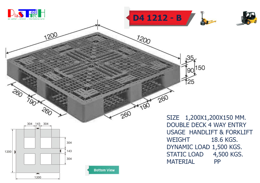 1,200×1,200×150 mm พาเลทพลาสติก