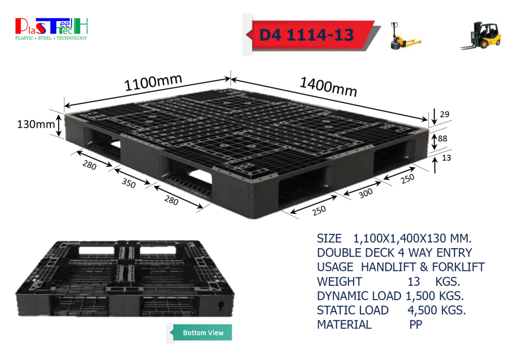 1,100×1,400×130 mm พาเลทพลาสติก