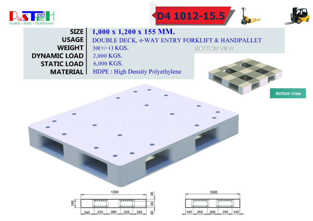 เราเป็นผู้เชี่ยวชาญด้าน ผลิตภัณฑ์พาเลทพลาสติก ด้วยเทคโนโลยี ในการออกแบบ และการผลิตที่ทันสมัยทำในพาเลทพลาสติกของเรามีคุณภาพที่แข็งแรงทนทานและ มีรูปแบบที่หลากหลายกว่า 50 รุ่น ทำในครอบคุมการใช้งานในทุกประเภท พาเลทพลาสติกทุกตัวได้มีการผ่านการตรวจสอบคุณภาพก่อน ส่งถึงลูกค้า