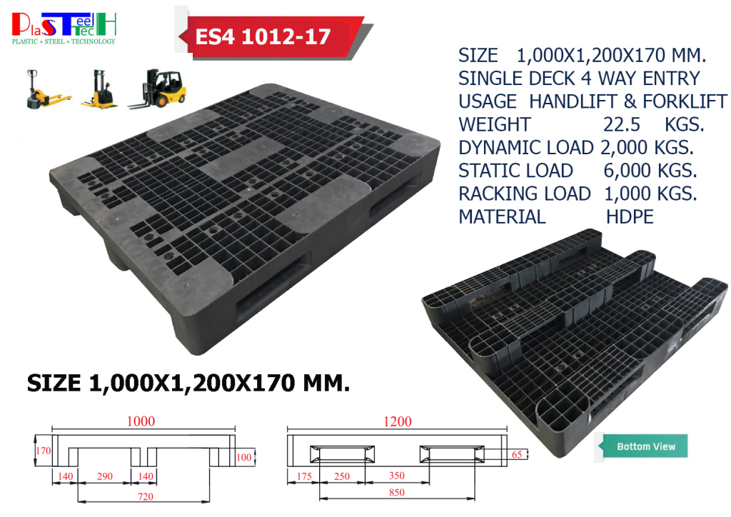 1,000×1,200×170 mm พาเลทพลาสติก หน้าตะแกรง ขา E