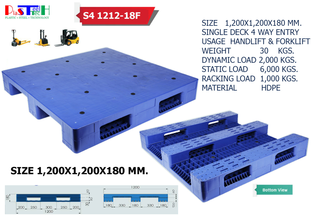 1,200×1,200×180 mm พาเลทพลาสติก หน้าเรียบ ขา E