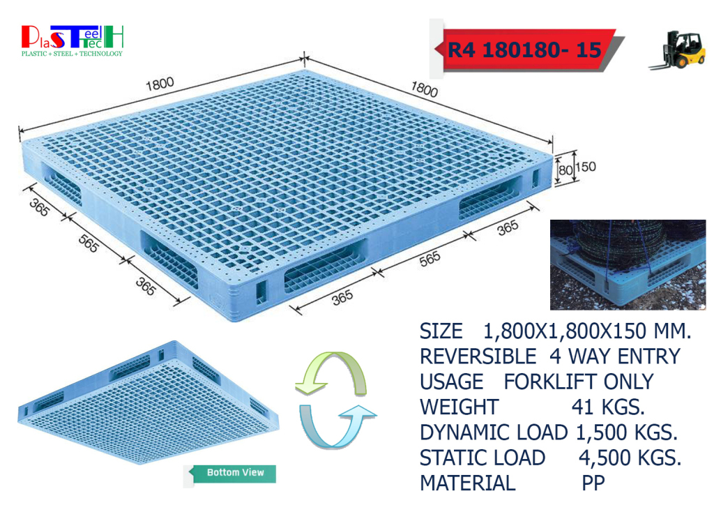 1,800×1,800×150 mm พาเลทพลาสติกแบบกลับด้านได้