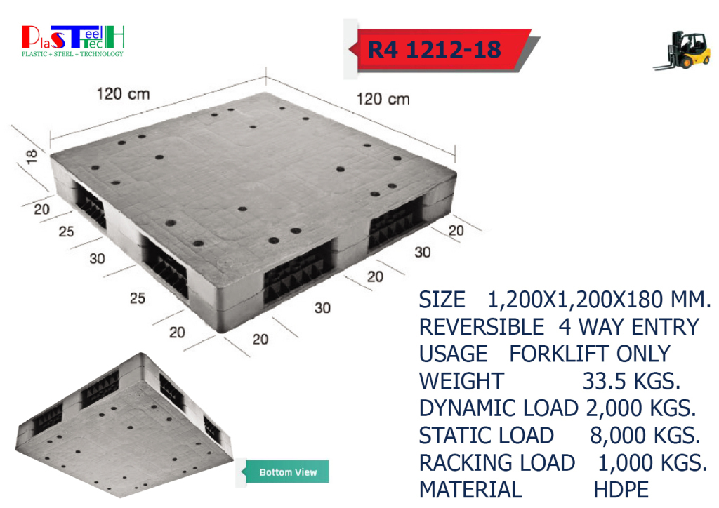 1,200×1,200×180 mm พาเลทพลาสติกแบบกลับด้านได้
