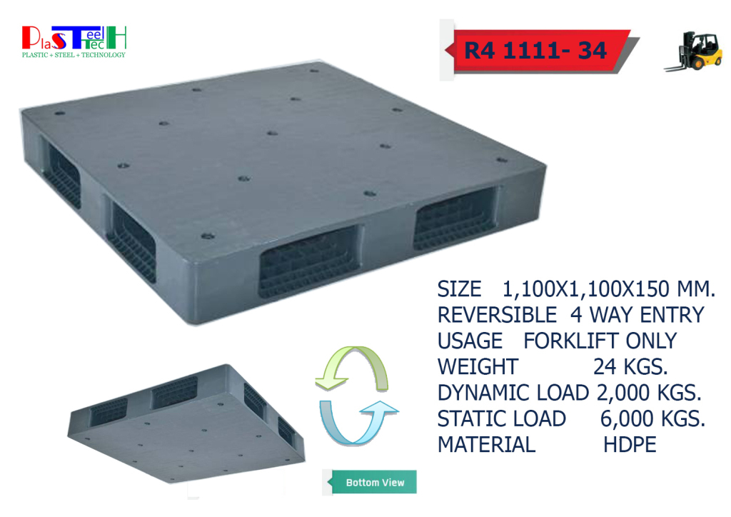 1,100×1,100×150 mm พาเลทพลาสติกแบบกลับด้านได้