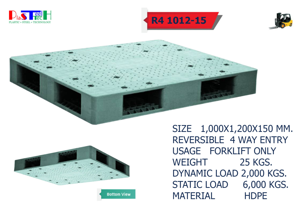 1,000×1,200,150 mm พาเลทพลาสติกแบบกลับด้านได้