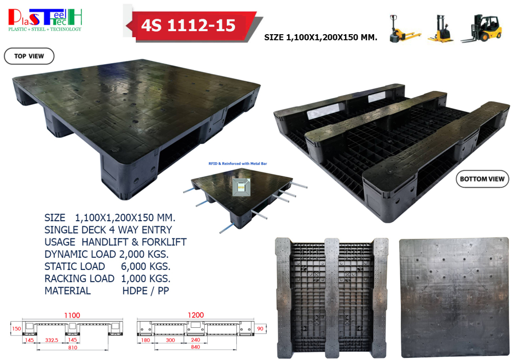 1,100×1,200×150 mm พาเลทพลาสติกเสริมเหล็ก