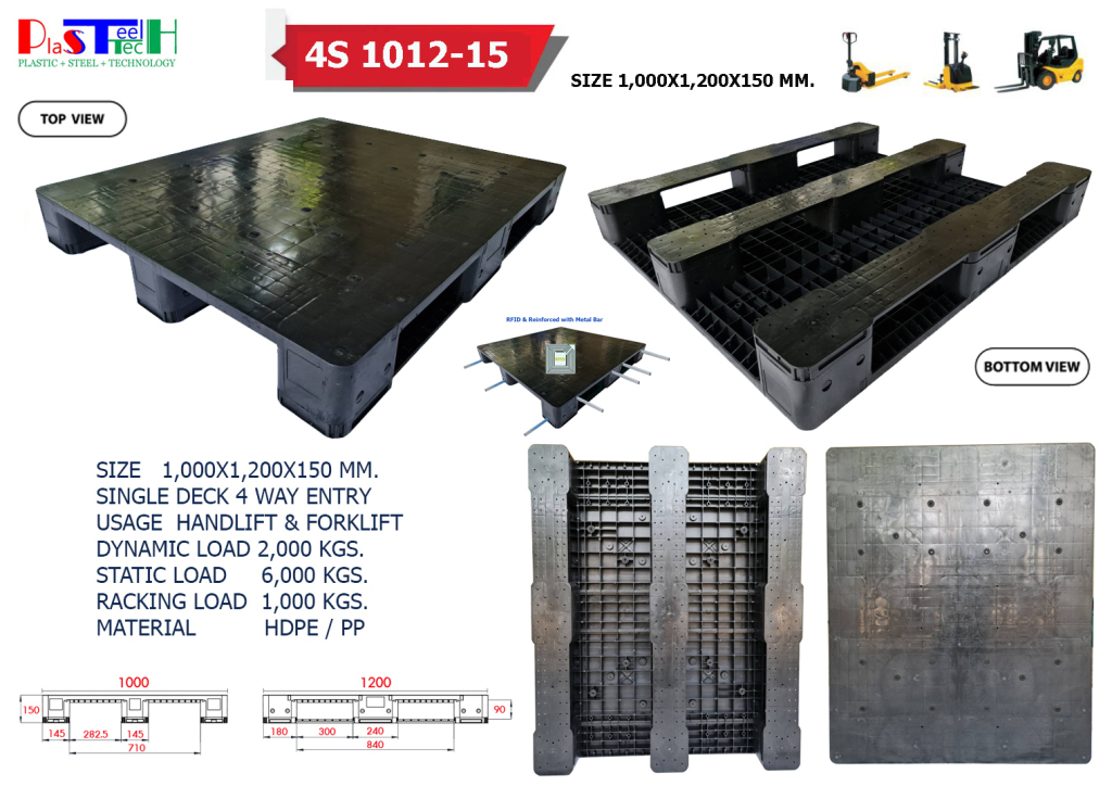 1,000×1,200×150 mm พาเลทพลาสติกเสริมเหล็ก